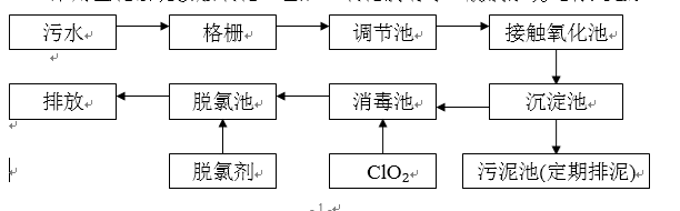 采用生化法既接触氧化工艺加二氧化氯消毒—脱氯系统进行处理。