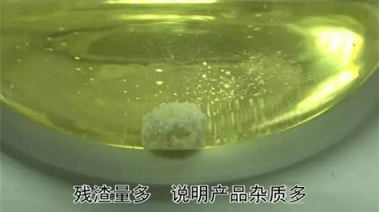 第二招:看残渣。残渣量多,说明产品杂质多,产品配方存在缺陷。