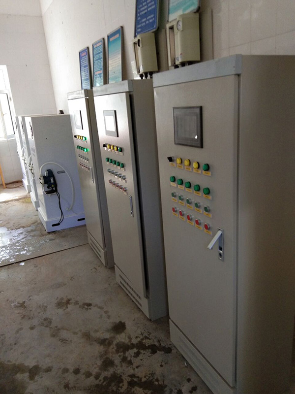 新源水暖安装我公司二氧化氯设备xb-1000 3套,通过一个主电源控制,是1个动力水源同时控制3个二氧化氯设备主机,主机与药罐分属两个房间。