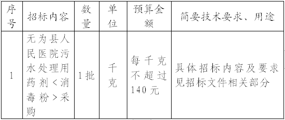 安徽巢湖无为县人民医院污水处理用药剂<消毒粉>采购招标